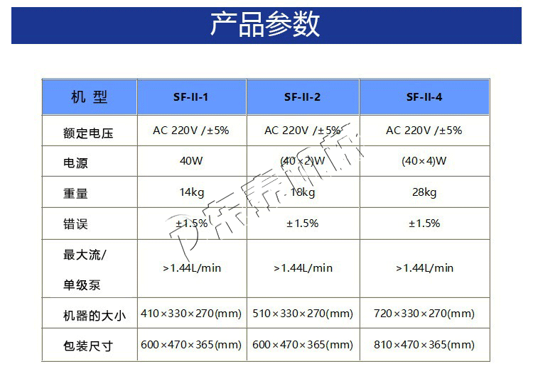 ⑧ 灌充量SF-II從1ml至10000ml可調;SF-I從10ml-80000ml可調,調節(jié)方便。
