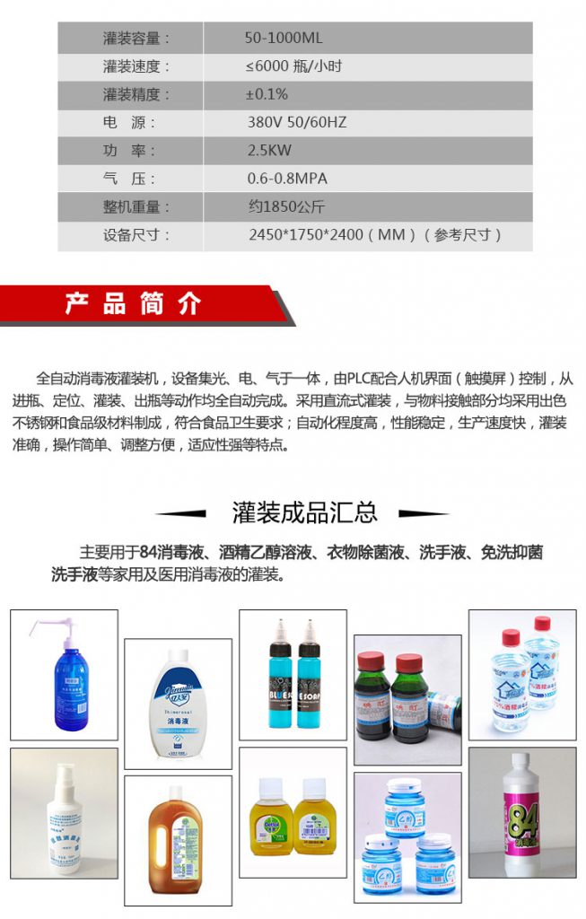 應(yīng)用領(lǐng)域:適用于食品飲料、醫(yī)藥、化工、農(nóng)藥等行業(yè)中各種流動(dòng)液體的灌裝。如果消毒液、酒精、殺菌劑、溶液等。