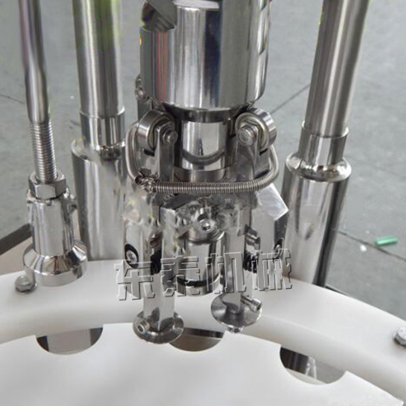 3、小瓶藥液灌裝旋蓋機灌裝系統(tǒng)具有吸氣功能,可防止液滴飛