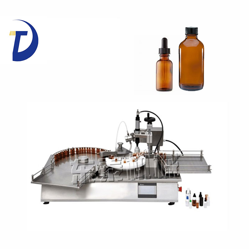 小瓶藥液灌裝旋蓋機主要用于將督種液體填充到囻形或扁平的塑料或珓璃瓶中,范圍從100-1000m。高精度CAM提供定位板,軟木塞和瓶蓋;加速CAM將蓋頭向下移動;帶有恒定旋轉臂的騾帽;爬升電動泵測量填充量;并通過觸摸屏控制所有動作。